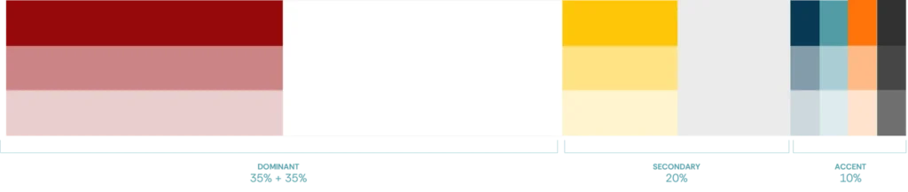 Color PaletteĀ Color StoryPrimary Palette Tints Paletteānewly added! Primary Colors HEX: #96080BCMYK: 0, 67, 72, 33RGB: 171, 56, 48 HEX: #CB8485CMYK: 0, 29, 31, 17RGB: 212, 151, 146 HEX: #EACECECMYK: 0, 11, 11, 7RGB: 238, 213, 211 HEX: #F5E6E7CMYK: 0, 6, 6, 4RGB: 245, 230, 231 Secondary Colors HEX: #FFC609CMYK: 0, 22, 96, 0RGB: 255, 198, 9 HEX: #FFE384CMYK: 0, 11, 48, 0RGB: 255, 227, 132 HEX: #FFF4CECMYK: 0, 4, 19, 0RGB: 255, 244, 206 HEX: #FFF9E6CMYK: 0, 2, 10, 0RGB: 255, 249, 230 HEX: #EBEBEBCMYK: 0, 0, 0, 8RGB: 235, 235, 235 Accent Colors HEX: #083954CMYK: 90, 32, 0, 67RGB: 8, 57, 84 HEX: #849CAACMYK: 22, 8, 0, 33RGB: 132, 156, 170 HEX: #CED7DDCMYK: 7, 3, 0, 13RGB: 206, 215, 221 HEX: #CED7DDCMYK: 3, 1, 0, 7RGB: 230, 235, 238 HEX: #539CA6CMYK: 50, 6, 0, 35RGB: 83, 156, 166 HEX: #A9CED3CMYK: 20, 2, 0, 17RGB: 169, 206, 211 HEX: #DDEBEDCMYK: 7, 1, 0, 7RGB: 221, 235, 237 HEX: #EEF5F6CMYK: 3, 0, 0, 4RGB: 238, 245, 246 HEX: #FF740ACMYK: 0, 55, 96, 0RGB: 255, 116, 10 HEX: #FFBA85CMYK: 0, 27, 48, 0RGB: 255, 186, 133 HEX: #FFE3CECMYK: 0, 11, 19, 0RGB: 255, 227, 206 HEX: #FFF1E7CMYK: 0, 5, 9, 0RGB: 255, 241, 231 HEX: #313131CMYK: 0, 0, 0, 81RGB: 49,49,49 HEX: #464646CMYK: 0, 0, 0, 73RGB: 70, 70, 70 HEX: #6F6F6FCMYK: 0, 0, 0, 56RGB: 111, 111, 111 HEX: #EAEAEACMYK: 0, 0, 0, 8RGB: 234, 234, 234